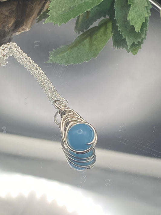 Aquamarine Gemstone and Argentium Sterling Silver Wrapped Crystal Pendant, Unique Handmade Necklace,