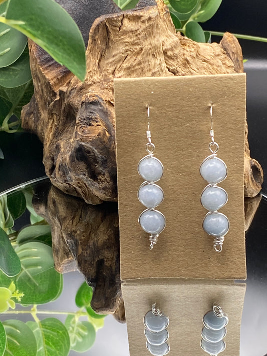 Aquamarine Gemstone and Silver Herringbone Wrapped Crystal Earrings, March Birthstone, Handcrafted Unique Gift