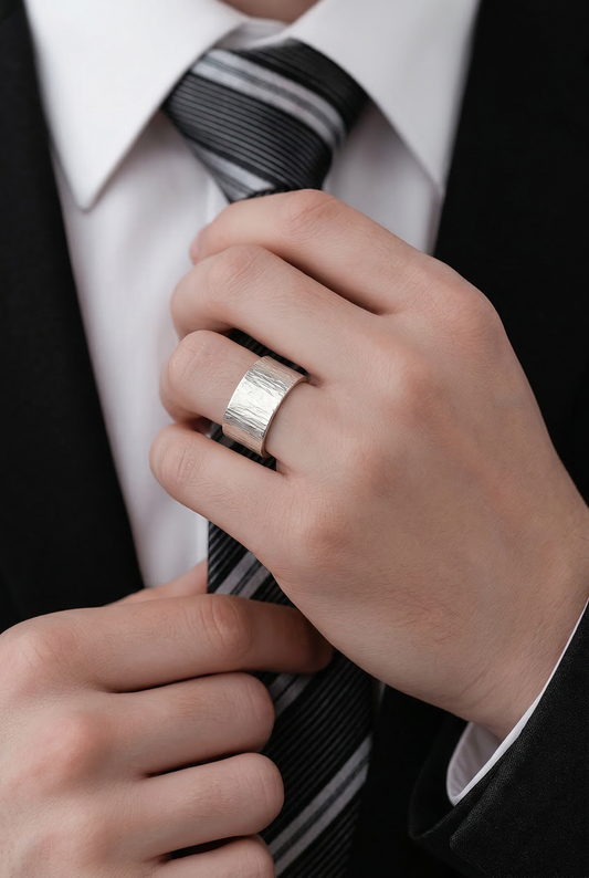 10mm Bark Textured Sterling Silver Ring, Raw, Earthy, Handcrafted Strength
