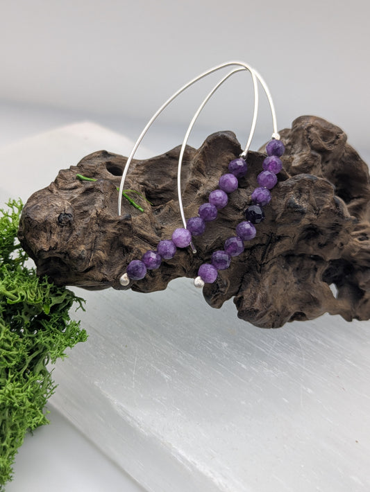 Amethyst Beaded Drop Earrings in Sterling Silver, Elegant Handmade Statement Jewellery