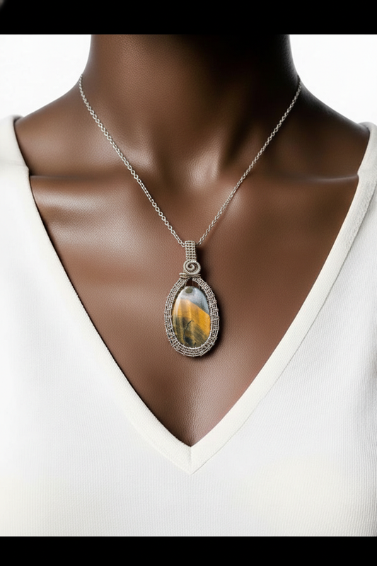Antiqued Tiger’s Eye Pendant, Hand-Wrapped in Sterling Silver