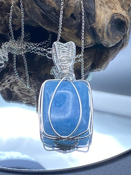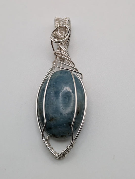 Aquamarine and Sterling Silver Wrapped Pendant, Unique Handmade Jewellery