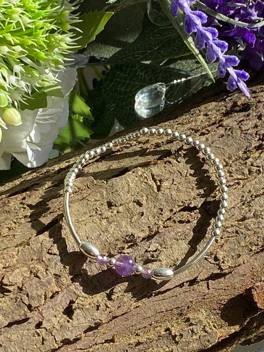 Amethyst Gemstone and Sterling Silver Crystal Bracelet, Unique Handmade Bracelet,