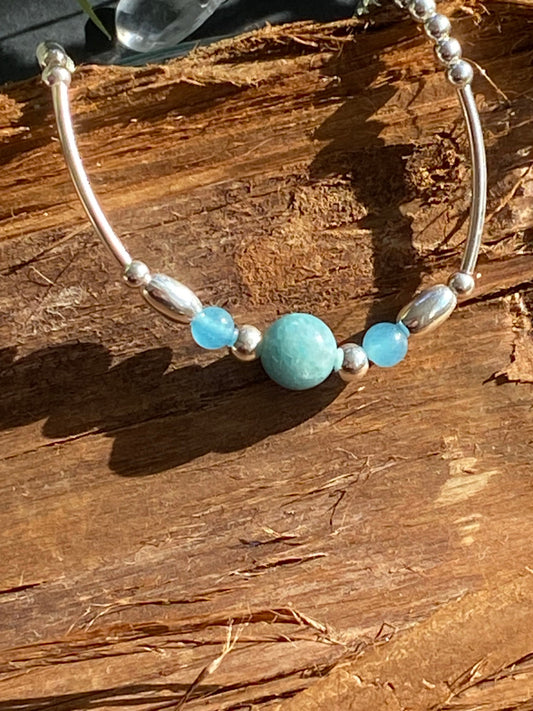 Aquamarine Gemstone and Sterling Silver Crystal Bracelet, Unique Handmade Gift,