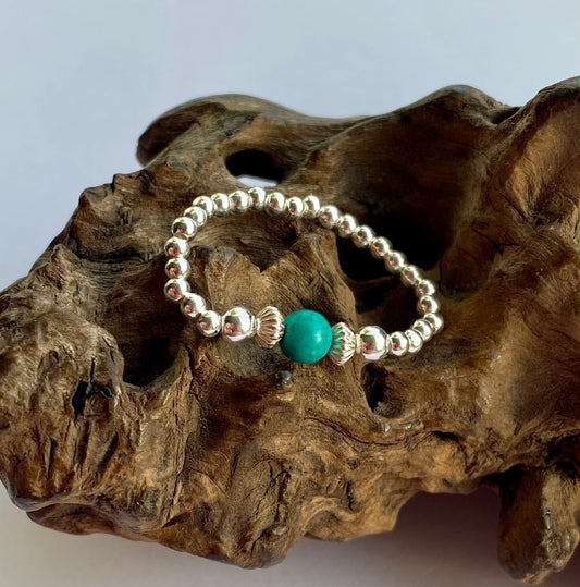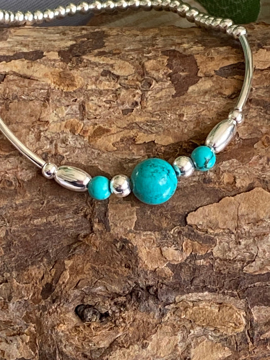 Turquoise Gemstone and Sterling Silver Crystal Bracelet, Unique Handmade Bracelet,