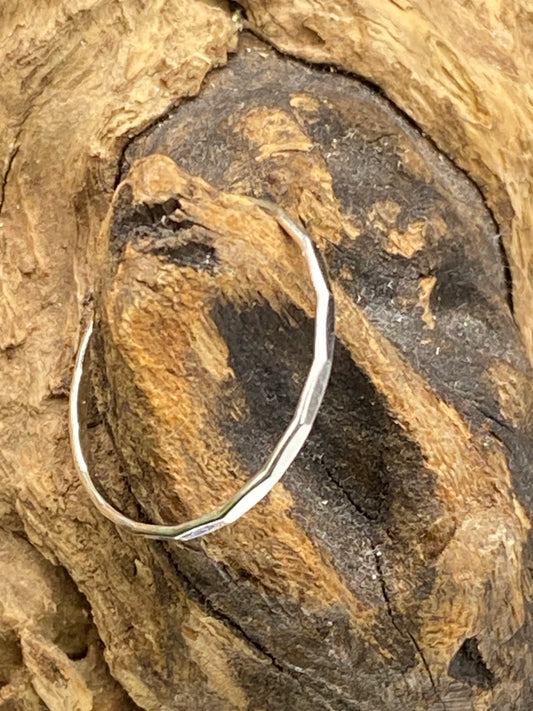 Stylish Sterling Silver Stacking Ring, Dainty Hammered Texture.