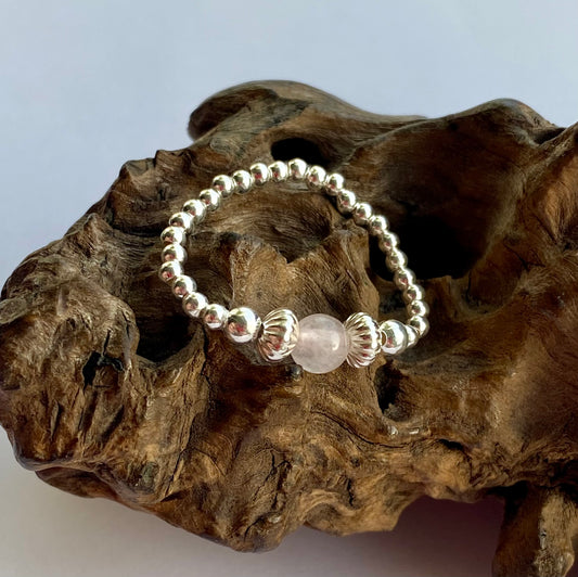 October Birthstone Bracelet, Rose Quartz Gemstone and Sterling Silver Crystal Bracelet, Unique Handmade Gift,