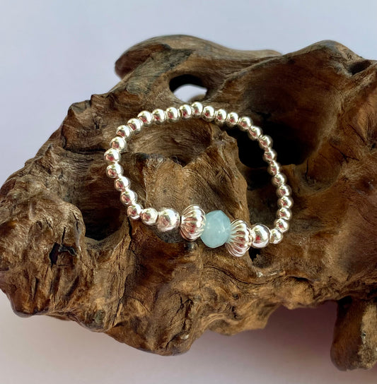 Aquamarine March Birthstone and Silver Ring, Handmade Stretch Ring