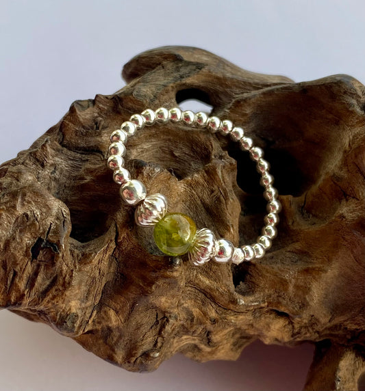 Peridot August Birthstone and Silver Ring, Handmade Gemstone Ring