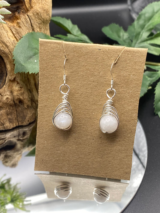 Delicate Moonstone Gemstone and Silver Wrapped Earrings, Crystal Earrings, Unique Handcrafted Earrings,