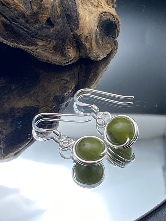 Emerald Green Gemstone and Silver Wrapped Earrings, Unique Handmade Gift,