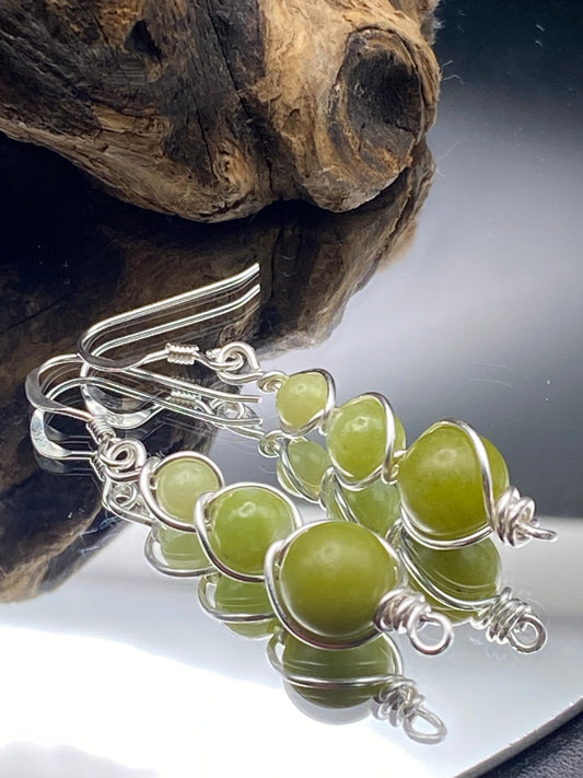 Emerald Green Gemstone Silver Wrapped Earrings, Crystal Earrings, Unique Handcrafted Earrings,