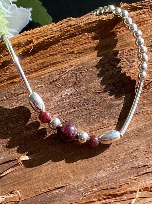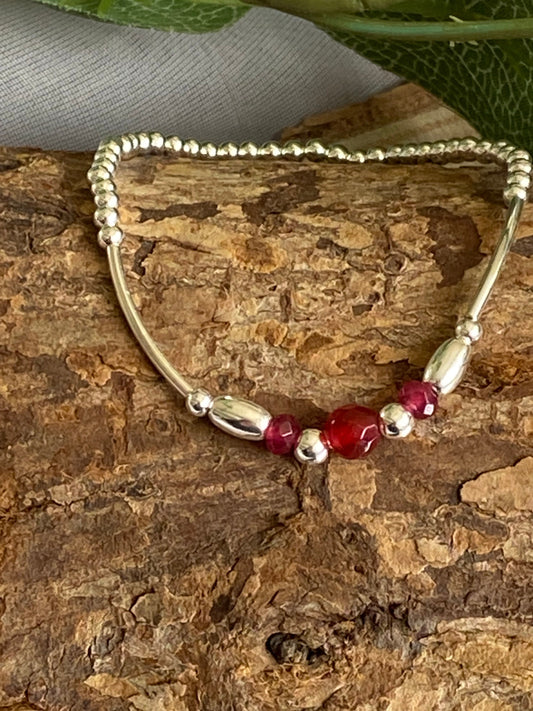 Ruby Gemstone and Sterling Silver Crystal Bracelet, Unique Handmade Bracelet,