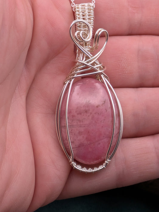 Handmade Rhodonite Crystal Necklace Wrapped in Sterling Silver, an Empowering Gift of Healing, Love, and Intention