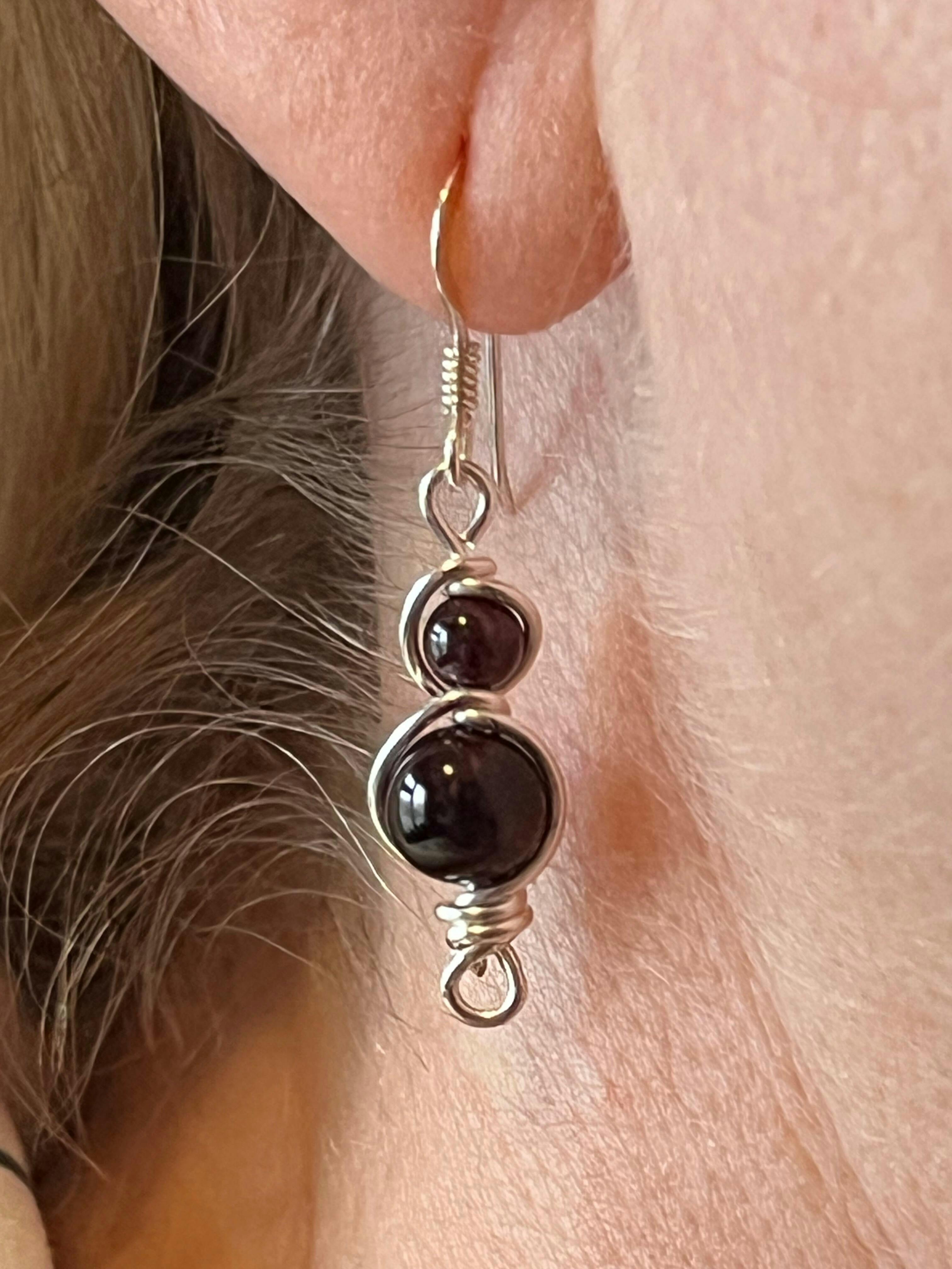 Garnet Gemstone and Silver Wrapped Crystal Earrings, Unique Handmade Gift,