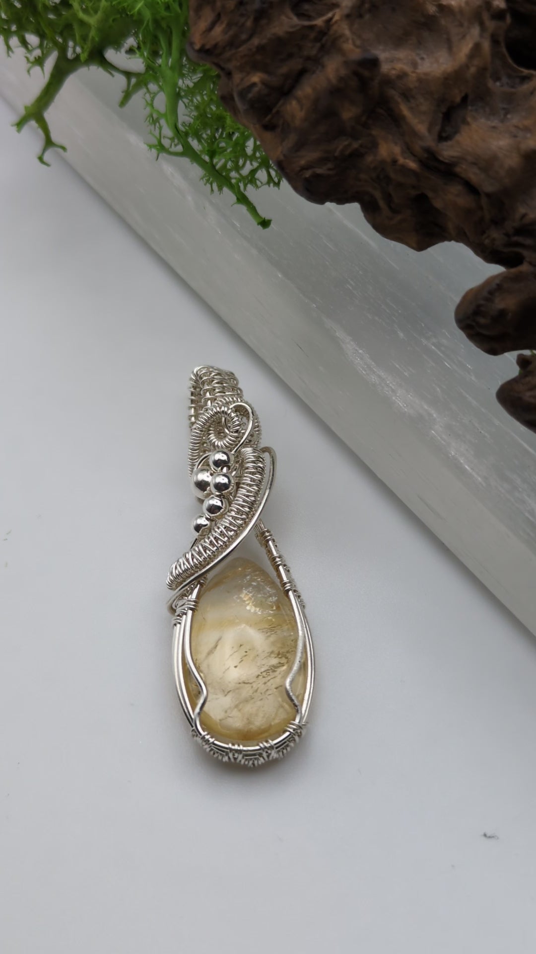 Infused with golden light and joyful energy, this hand-wrapped Citrine pendant is a celebration of warmth, clarity, and abundance. Carefully crafted in sterling silver, each curve and coil is shaped by hand in my Buckingham studio, honouring the natural beauty of the stone and the intention behind the design.