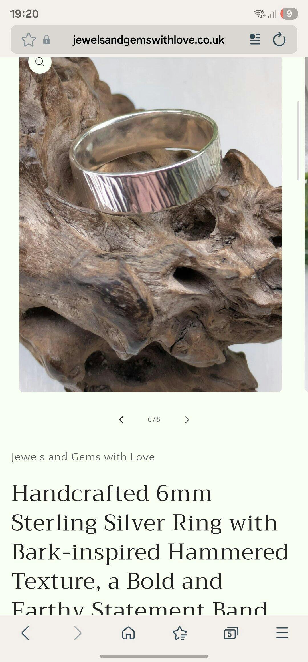 Handcrafted 6mm Sterling Silver Ring with Bark-inspired Hammered Texture, a Bold and Earthy Statement Band Made From Recycled 925 Silver